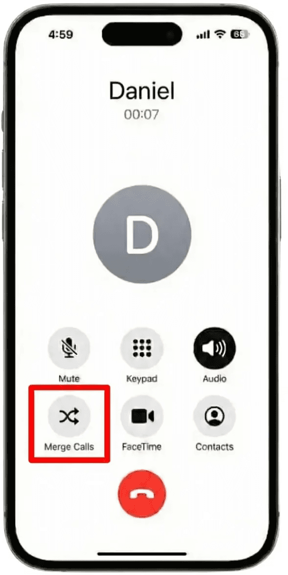 Add the person you want to talk to: Tap "Add Call" on your screen, then dial or select your contact. Wait for them to answer.