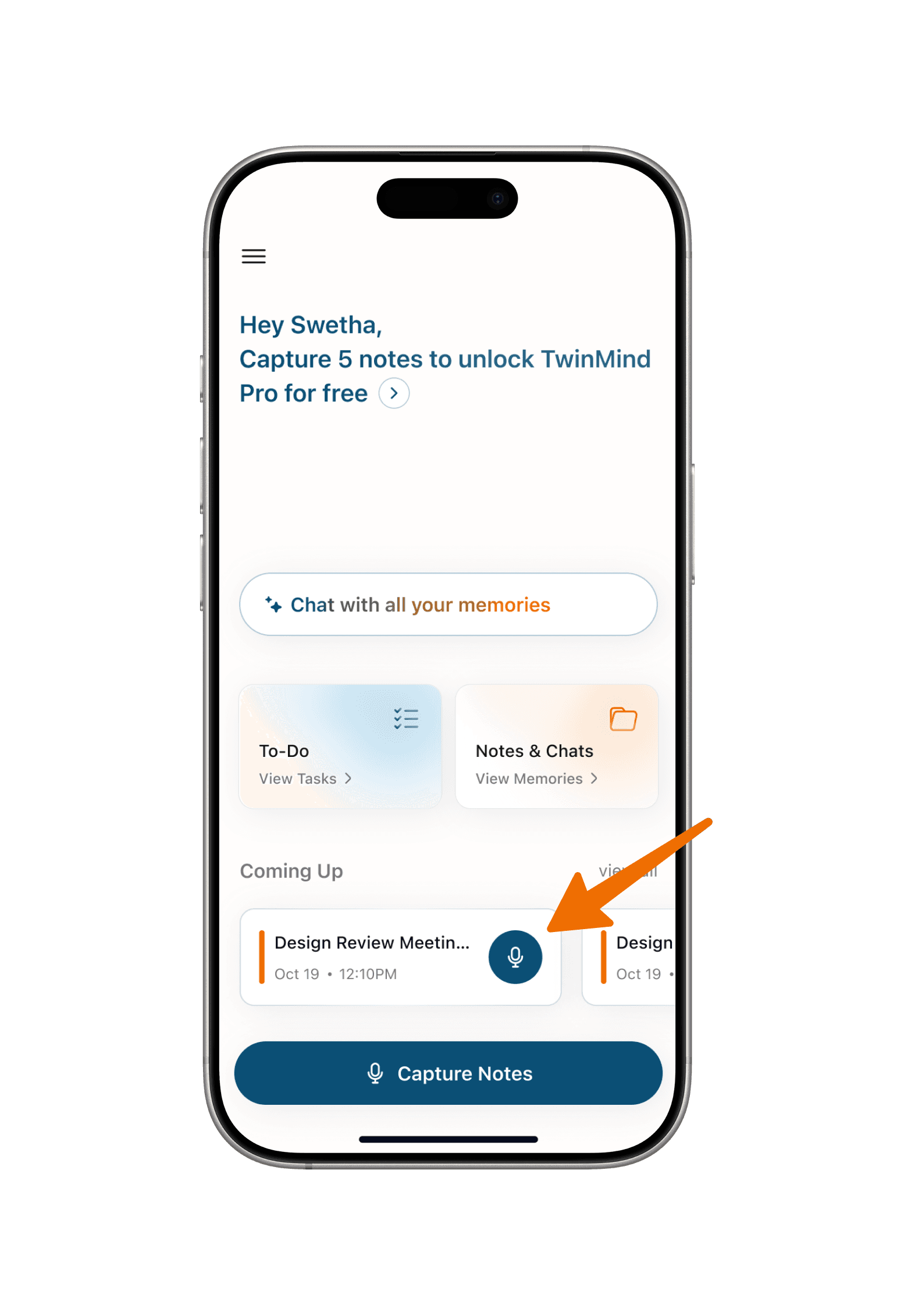 You can turn off your screen or leave the app in your pocket; TwinMind will keep capturing.