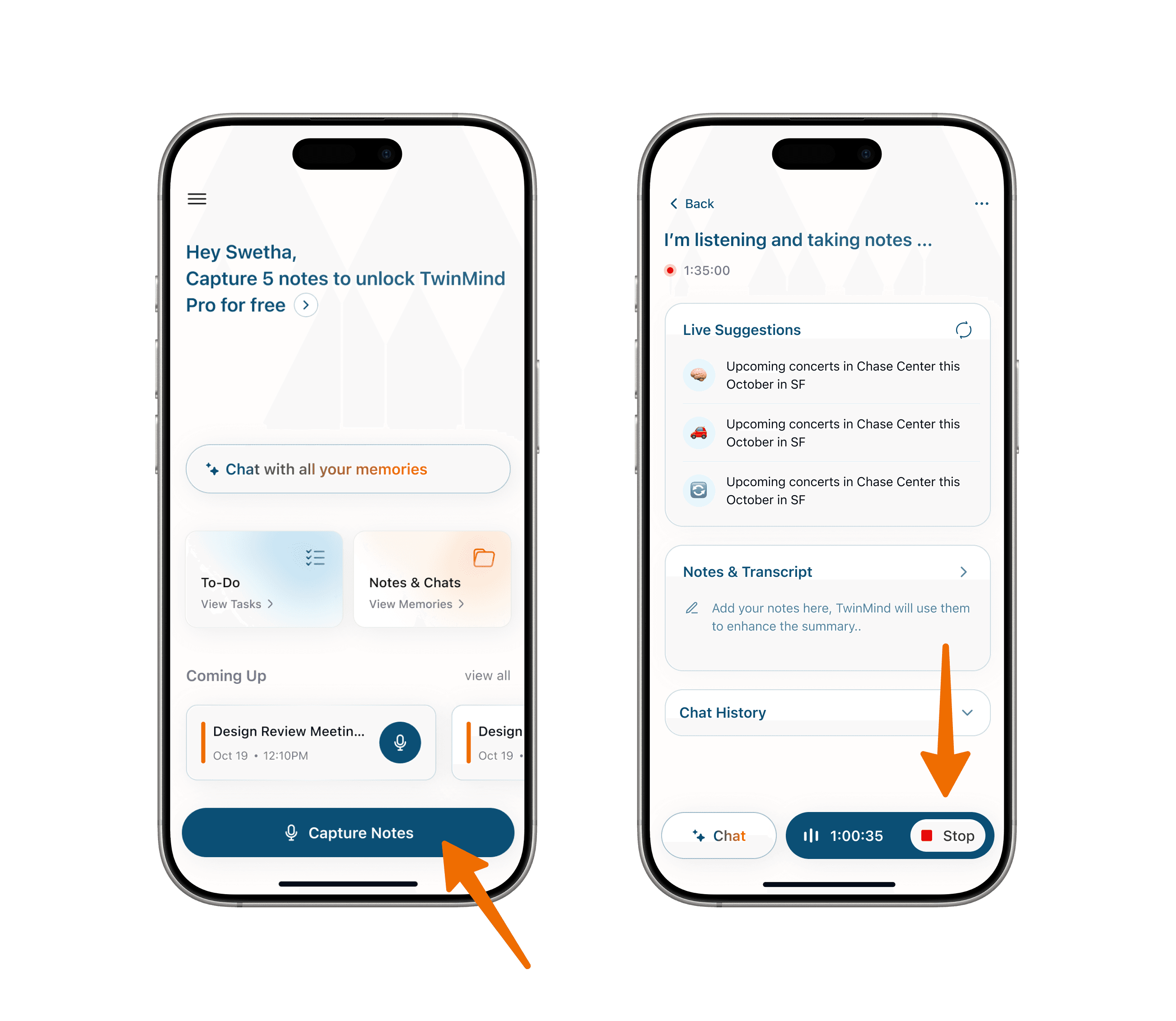 Read Your Summary: TwinMind automatically generates a clear, organized summary of your conversation, highlighting key points and important information.