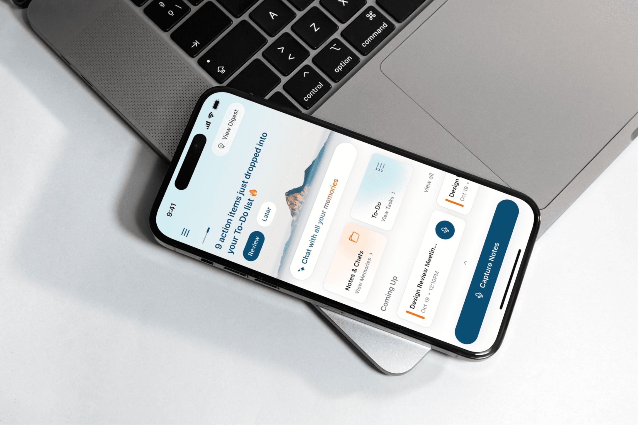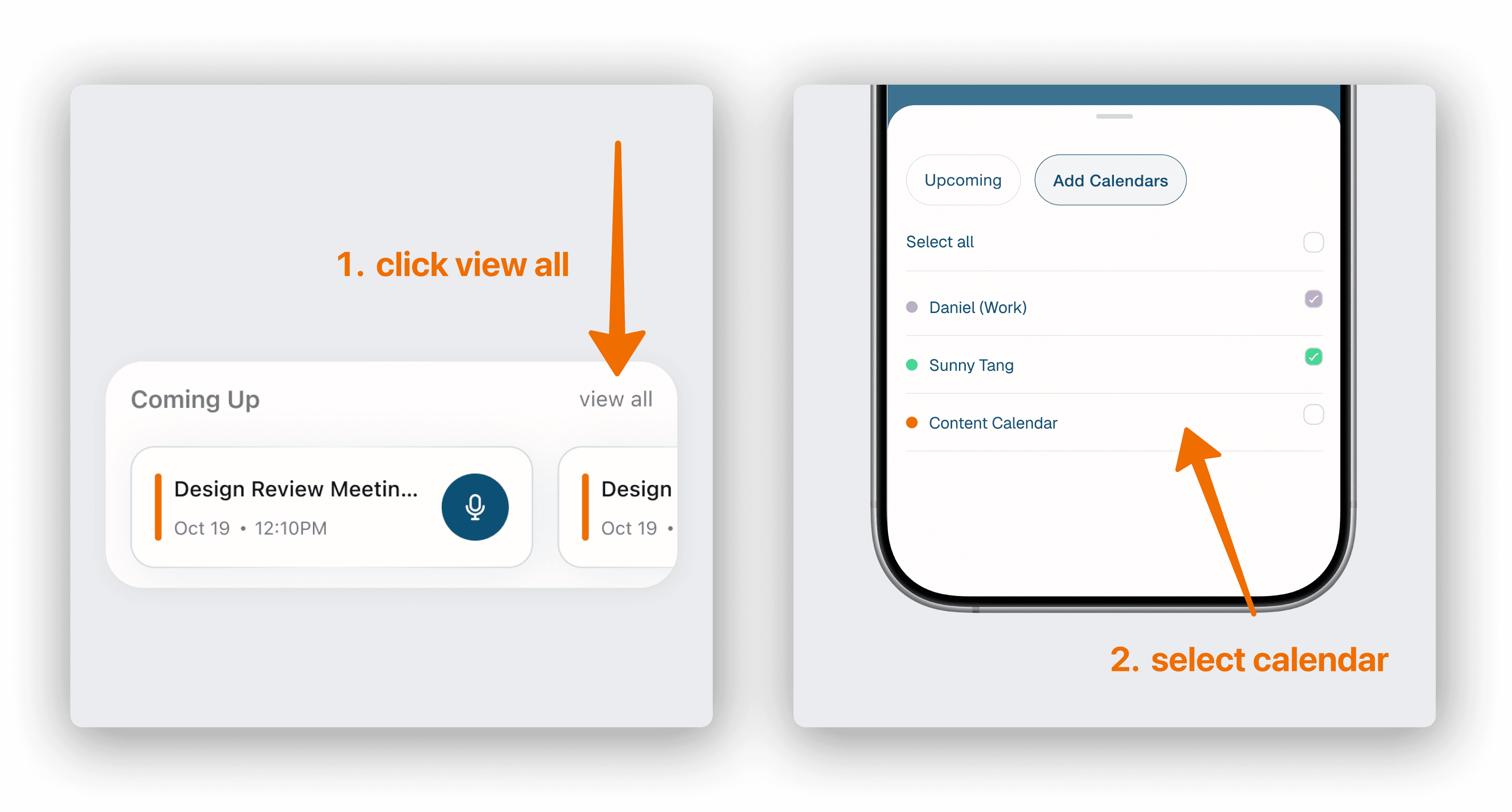 One-Tap Capture: You can tap any event card to begin capturing. This automatically links the recording to that calendar event.
